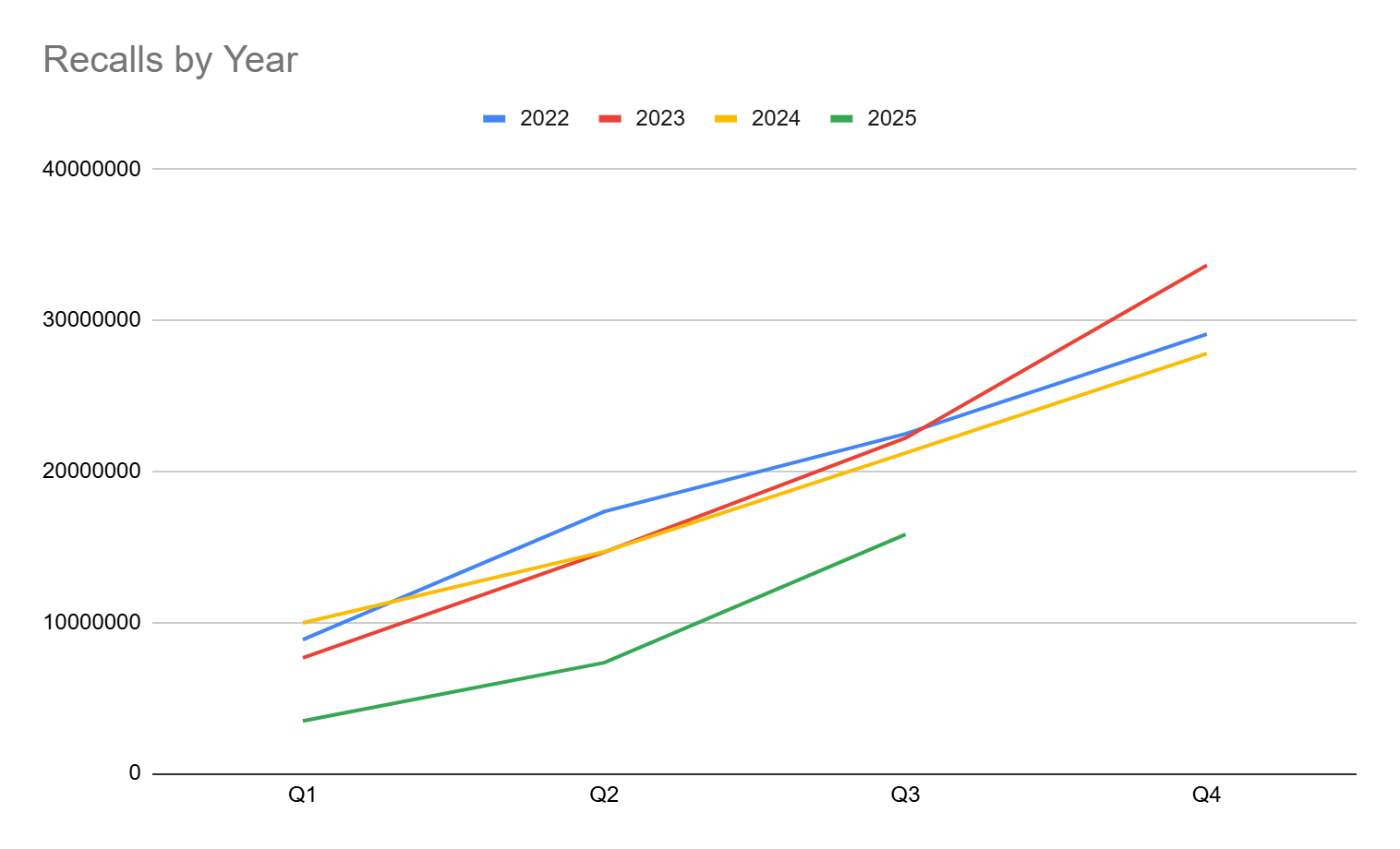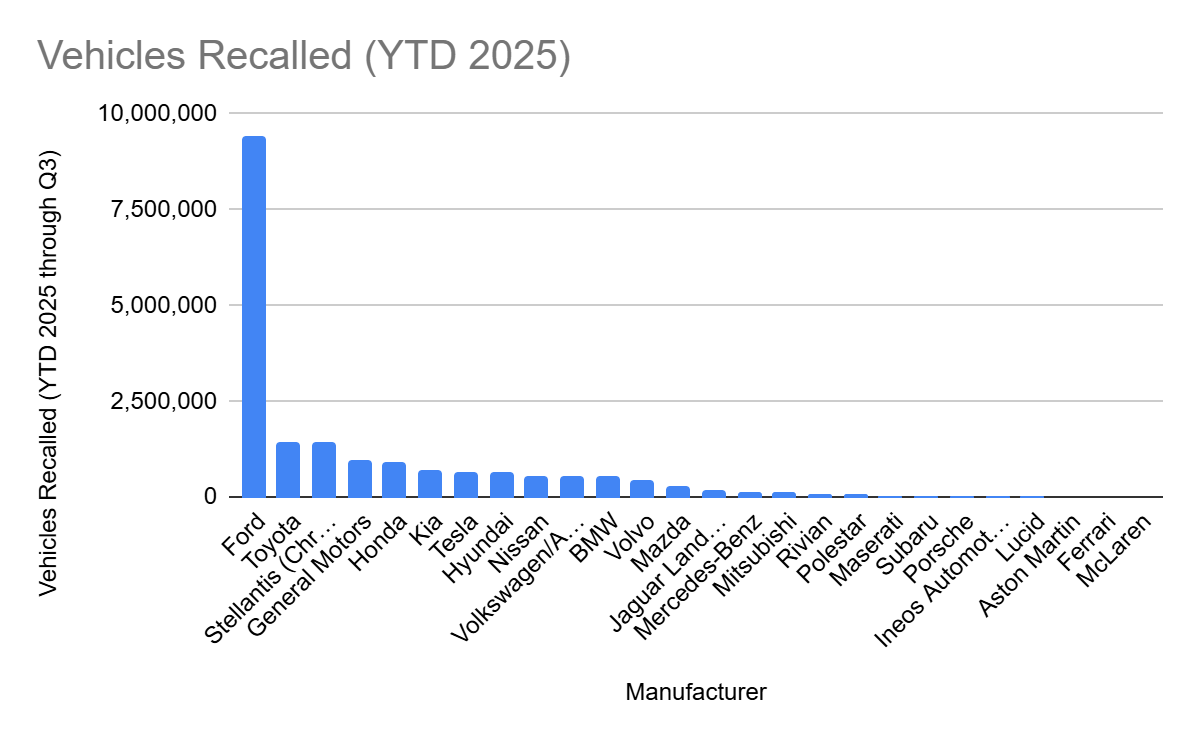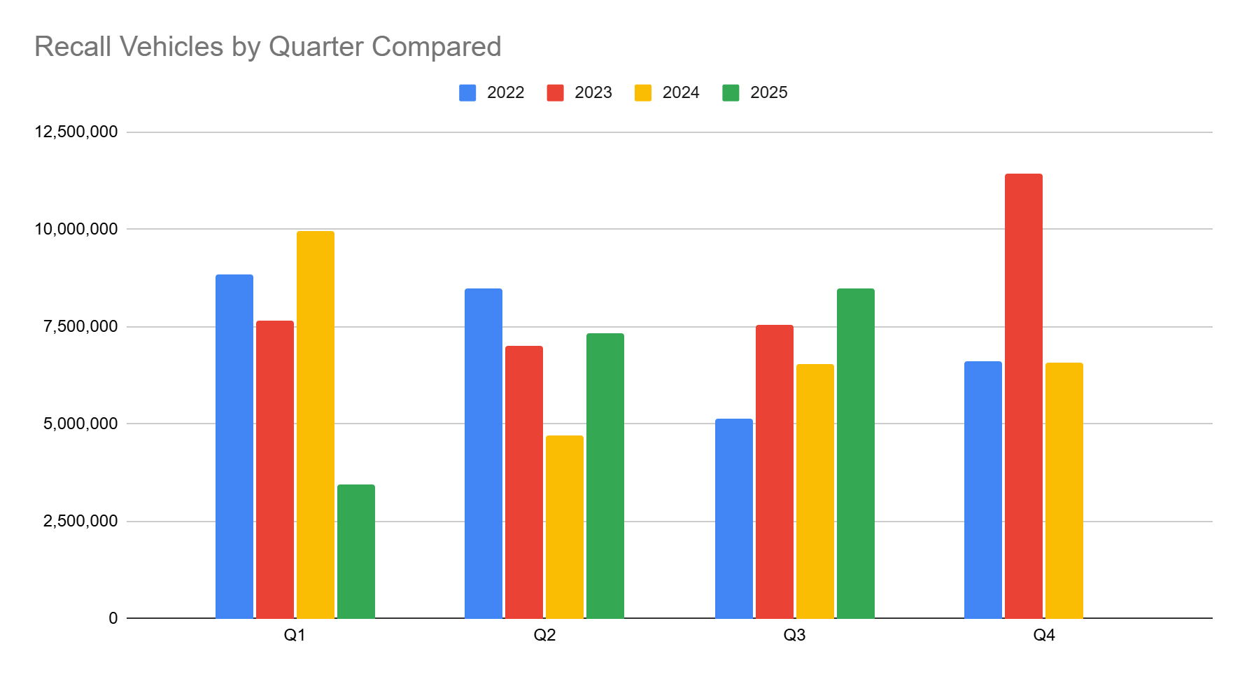 - YTD 2025 Total Vehicles Affected (Q1–Q3): 18,902,597 vehicles