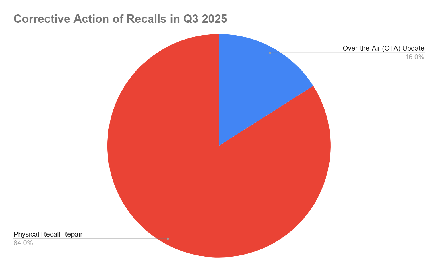 1,359,442 vehicles, 16% of all vehicles recalled in Q3 2025, can be repaired via Over-the-Air (OTA) software updates.