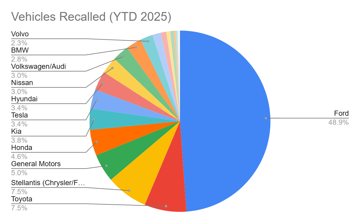 Manufacturer | Vehicles Recalled (YTD 2025) |