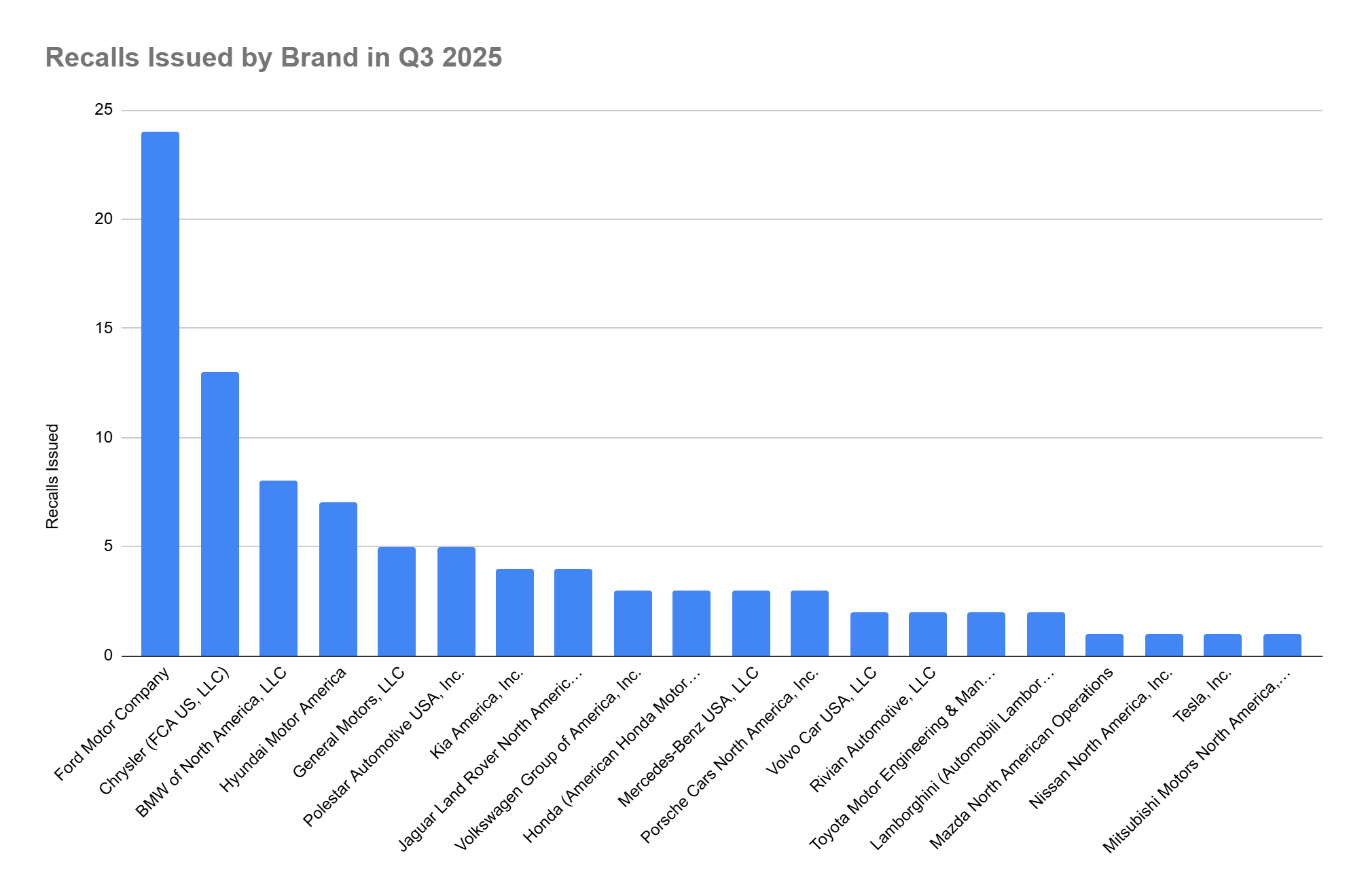 YTD 2025 (Q1 + Q2 + Q3) Vehicles Affected by Brand